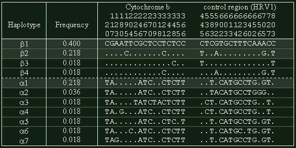 The β haplogroup seems to be much more divergent from ancestral state than is the α haplogroup (fig.2). It is likely that this extreme divergence is artificial: some dramatic demographic events can accelerate molecular evolution of lineages.